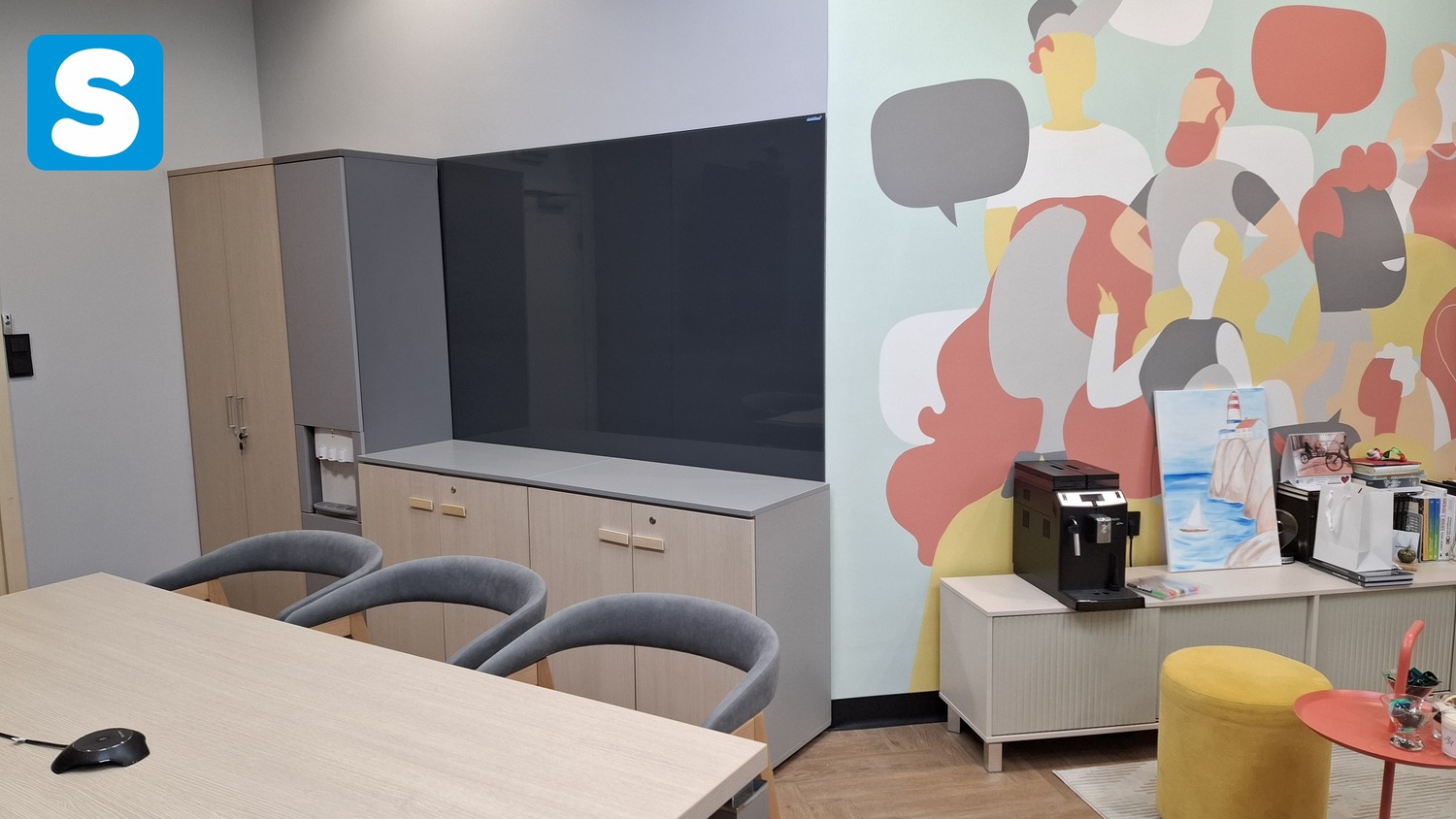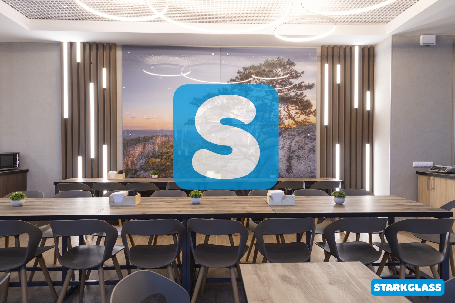 Стеклянные вставки с интерьерной печатью кафе Марьяж