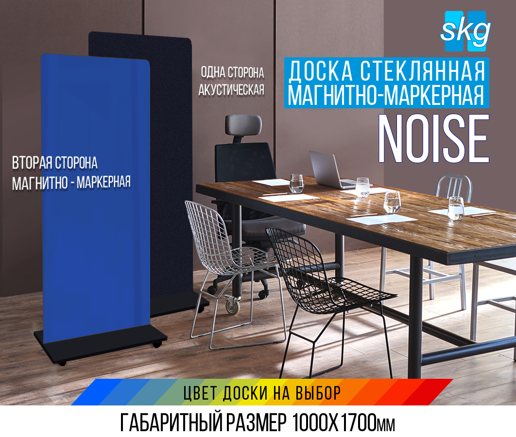 Двухсторонняя портативная доска одна поверхность котрой из закаленного стекла, вторая звукопоглащающая из ткани. Отличная альтернатива мобильным звукопоглащающим перегородкам. Комлектация: Крепеж, Губка 1шт., Маркер 1шт., Магниты 5шт.
